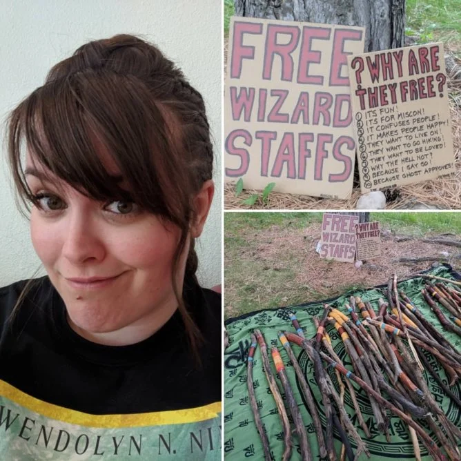 The other panel I was excited about, but which ultimately got canceled, was a rated R panel about writing convincing sex. Curse you, time restrictions and overlapping scheduling which made the floor vendors need the room and the authors not willing to do the discussion outside! It's okay, I found free wizard staffs and obtained a magical stick of power with seashells and a teal and gold leather handle. I have a color theme, okay??